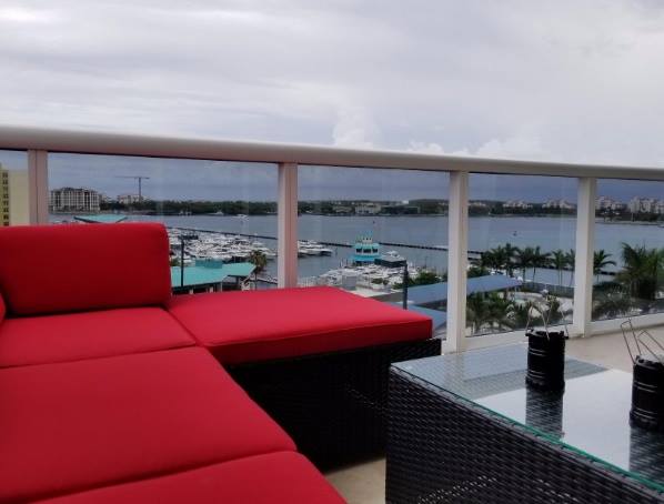 “This patio furniture is top notch! The Sunbrella fabric repels minor spills. We live in southern Florida. Downpours are unexpected and fierce; however, there is an included rain cover which has proven invaluable for when we’re out of town or when we have inclement weather. There is almost no assembly required, just some cushions, and if you want a sofa type seating arrangement there are hooks included. See pics for my gorgeous patio furniture in real life!” – SS